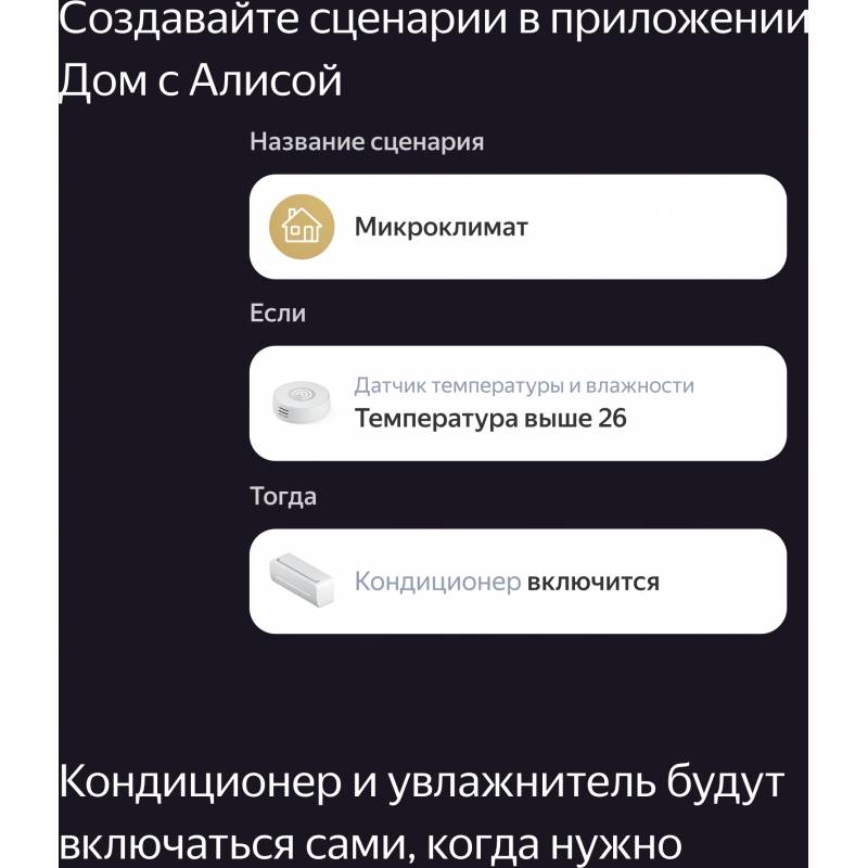 - Наличие Wi-Fi, мобильное приложение Умный Дом с Алисой