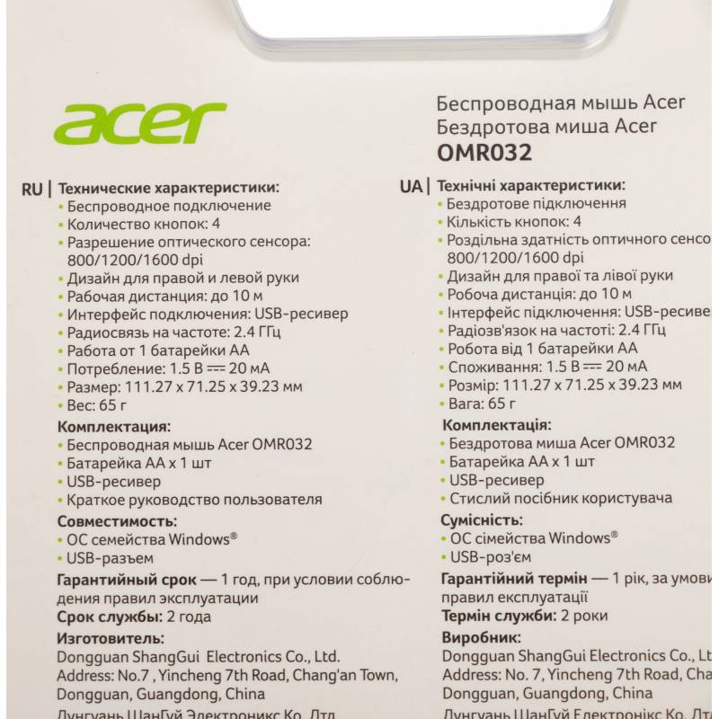 - Беспроводная мышьБатарейка АА х 1 штUSB-ресиверКраткое руководство пользователя
