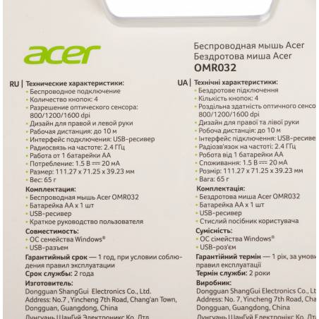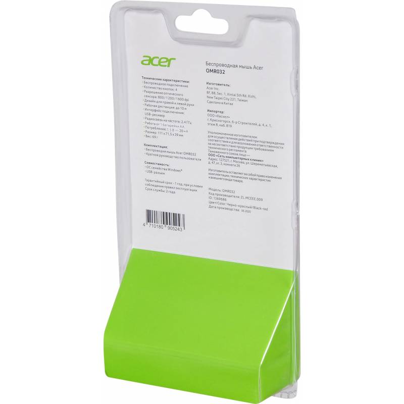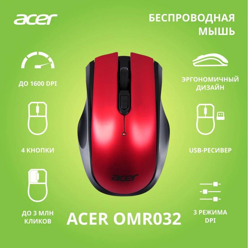 Мышь Acer OMR032 черный/красный оптическая 1600dpi беспров. USB 4but (ZL.MCEEE.009)