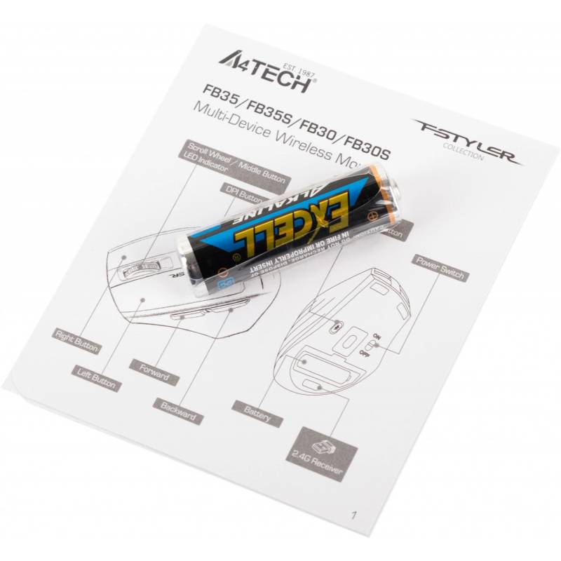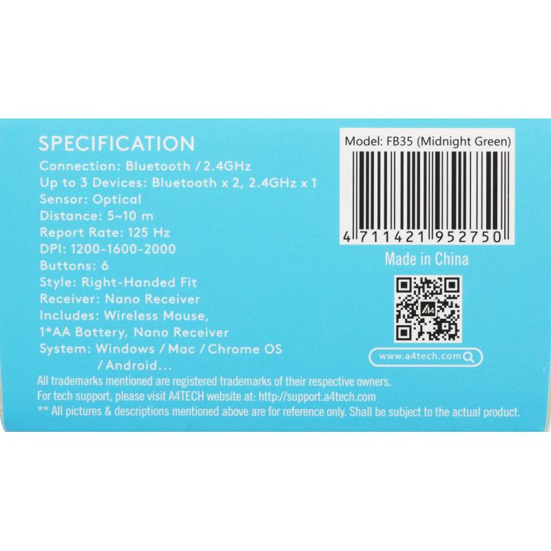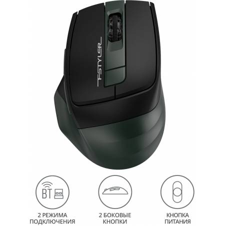 Мышь A4Tech Fstyler FB35 зеленый/черный оптическая 2000dpi беспров. BT/Radio USB для ноутбука 6but (FB35 MIDLIGHT GREEN)