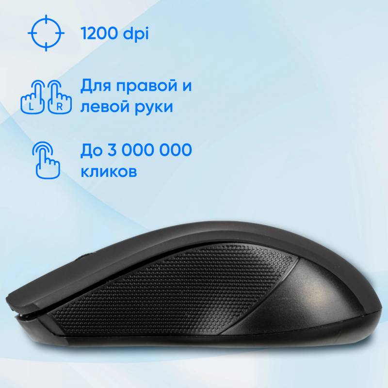 Мышь Оклик 615MW черный оптическая 1200dpi беспров. USB для ноутбука 3but (412852)