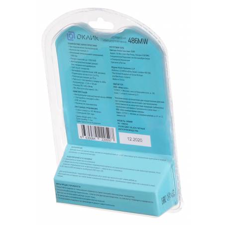 Мышь Оклик 486MW черный оптическая 1600dpi беспров. USB для ноутбука 3but (1196555)