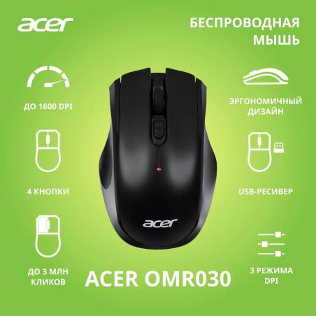 Мышь Acer OMR030 черный оптическая 1600dpi беспров. USB 4but (ZL.MCEEE.007)