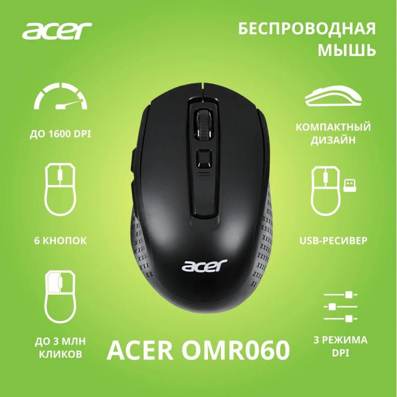 Мышь Acer OMR060 черный оптическая 1600dpi беспров. USB 6but (ZL.MCEEE.00C)
