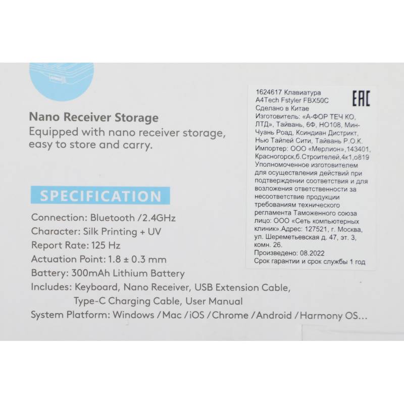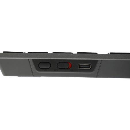 - Клавиатура поддерживает два режима подключения - Bluetooth и с помощью USB-ресивера 2,4 ГГц. Работает с PC и Mac. Встроенная перезаряжаемая литиевая батарея емкостью 300 мАч позволяет использовать ее до 8 месяцев при полной зарядке.