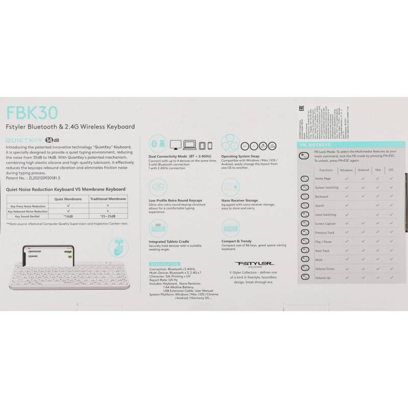 Клавиатура A4Tech Fstyler FBK30 белый USB беспроводная BT/Radio slim Multimedia (FBK30 WHITE)