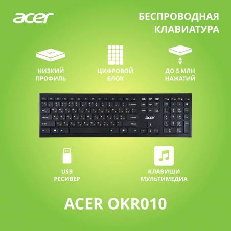 Клавиатура Acer OKR010 черный USB беспроводная slim Multimedia (ZL.KBDEE.003)
