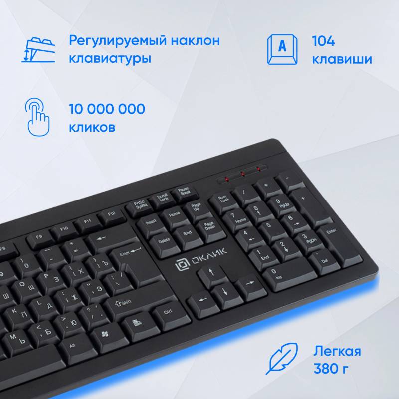 Клавиатура Оклик 95KW черный USB беспроводная (1788287)