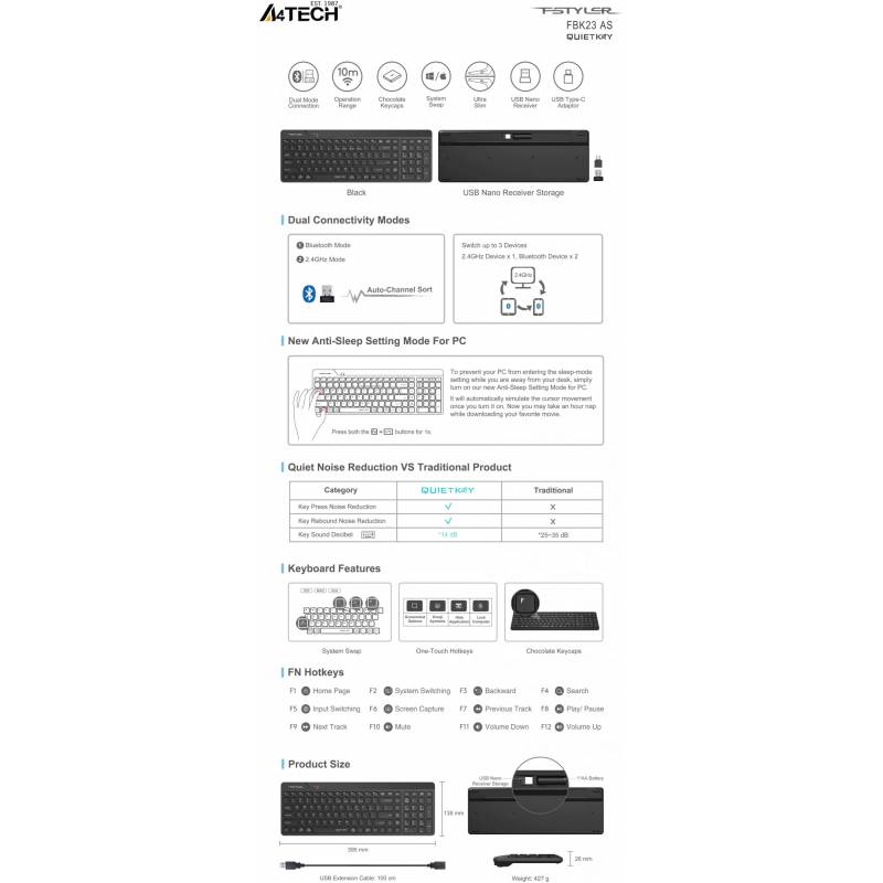 Клавиатура A4Tech Fstyler FBK23 AS черный USB беспроводная BT/Radio (FBK23 AS)