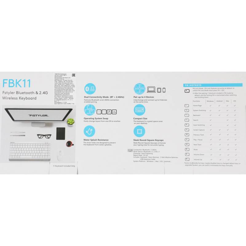 Клавиатура A4Tech Fstyler FBK11 белый/серый USB беспроводная BT/Radio slim (FBK11 WHITE)
