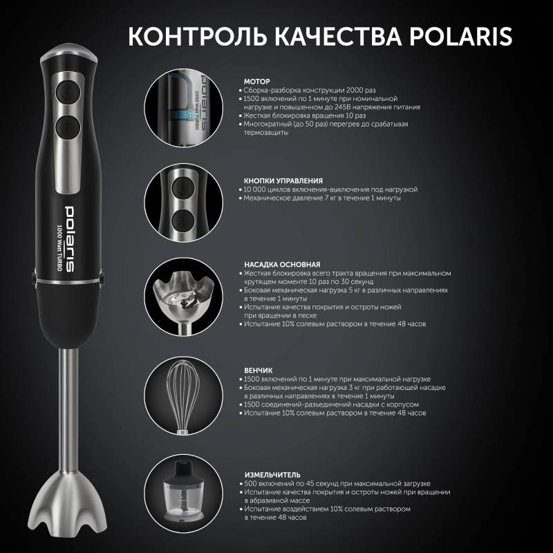 Блендер погружной Polaris PHB 1065 1000Вт черный/нержавеющая сталь