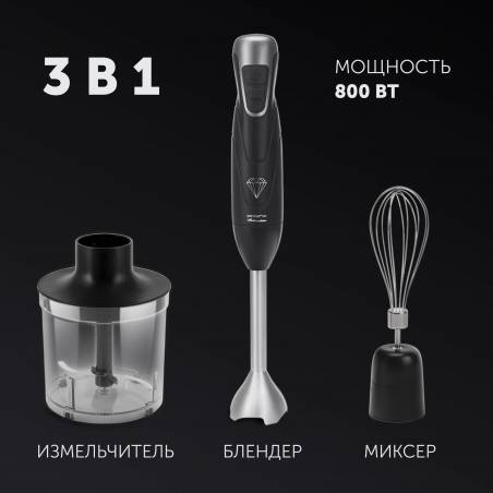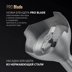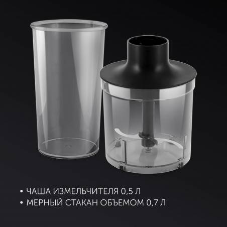 - 3 В 1: Измельчитель, Миксер, Блендер. Ножи особой формы PRO Blade для эффективного измельчения. Чашка измельчителя объемом 0,5 л. Мерный стакан объемом 0,7 л.