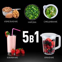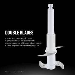 - 5 в 1: взбивание, смешивание, измельчение, нарезка, хранение. Технология PROtect+ двойная защита двигателя (от перегрева и перегрузки) обеспечивает надежность и долговечность. До 15 минут автономной работы. От 30 до 60 циклов работы без подзарядки.