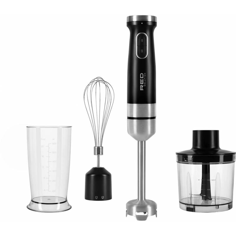 - Погружной блендер RED solution HB2903 — мощный универсальный кухонный прибор, с которым домашняя кулинария выйдет на новый уровень. В комплектацию устройства входят три насадки (блендер, венчик и чаша-измельчитель) и высокий мерный стакан для смешивания.
