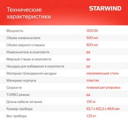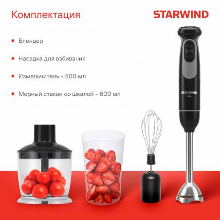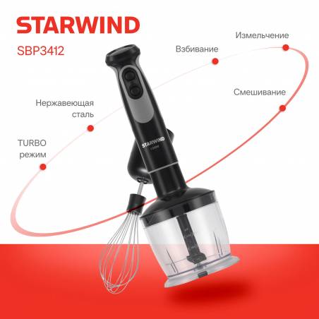 Блендер погружной Starwind SBP3412 1200Вт черный/серый