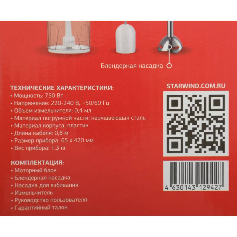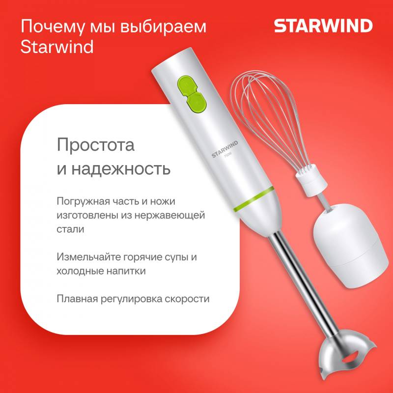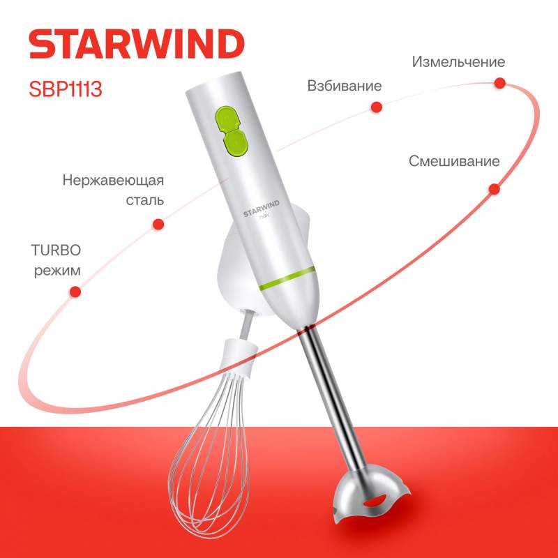Блендер погружной Starwind SBP1113 750Вт белый/зеленый