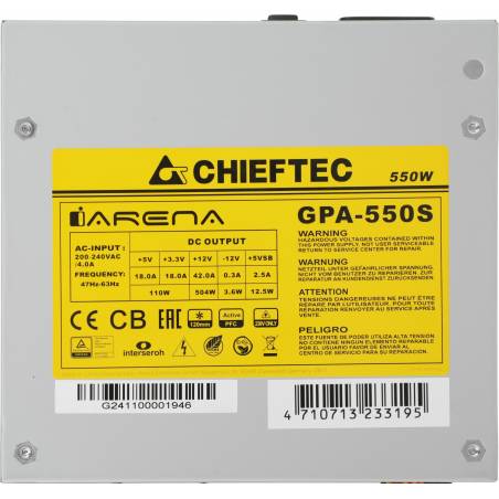 Блок питания Chieftec ATX 550W iArena GPA-550S (20+4pin) APFC 120mm fan 4xSATA