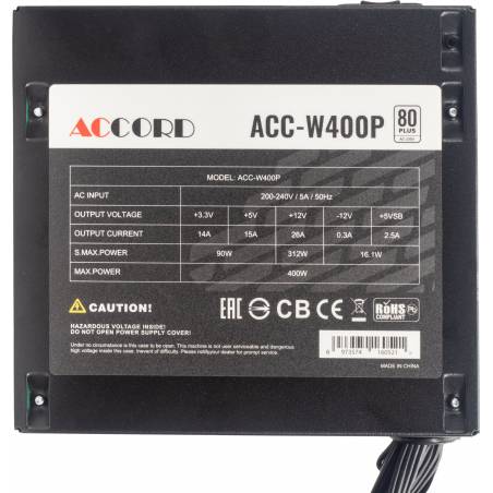 Блок питания Accord ATX 400W ACC-W400P 80+ white (20+4pin) 120mm fan 6xSATA RTL