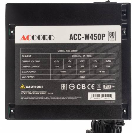 Блок питания Accord ATX 450W ACC-W450P 80+ white (20+4pin) 120mm fan 6xSATA RTL