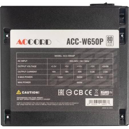 Блок питания Accord ATX 650W ACC-W650P 80+ white (20+4pin) 120mm fan 6xSATA RTL