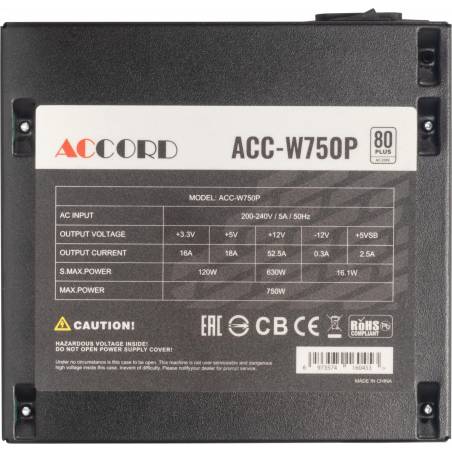 Блок питания Accord ATX 750W ACC-W750P 80 PLUS WHITE (20+4pin) 120mm fan 6xSATA RTL