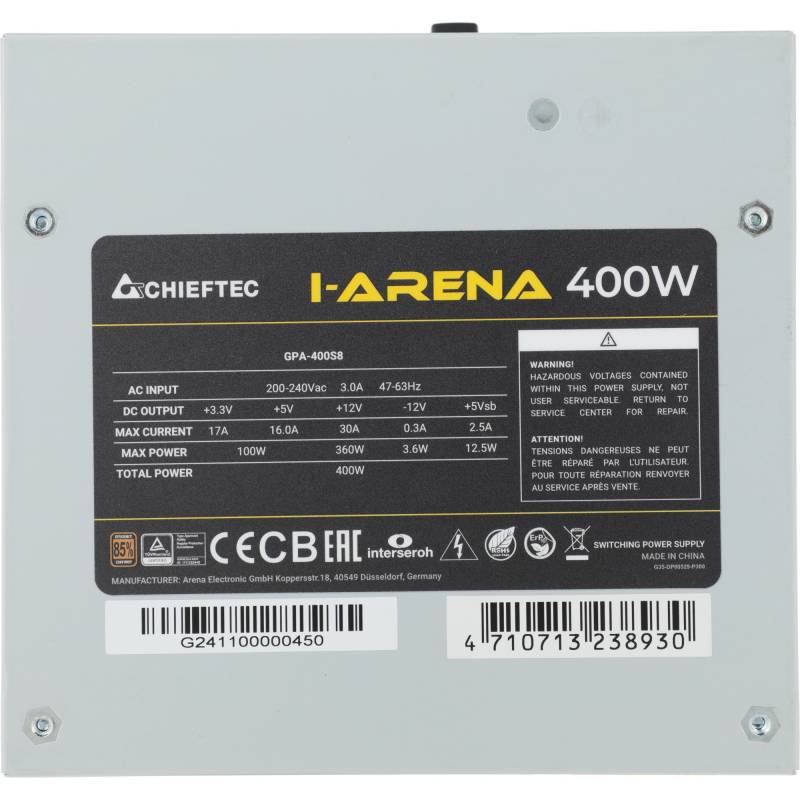 Блок питания Chieftec ATX 400W iArena GPA-400S8 (20+4pin) APFC 120mm fan 3xSATA