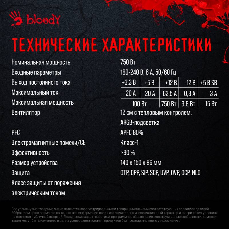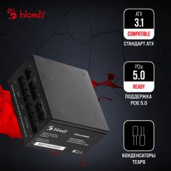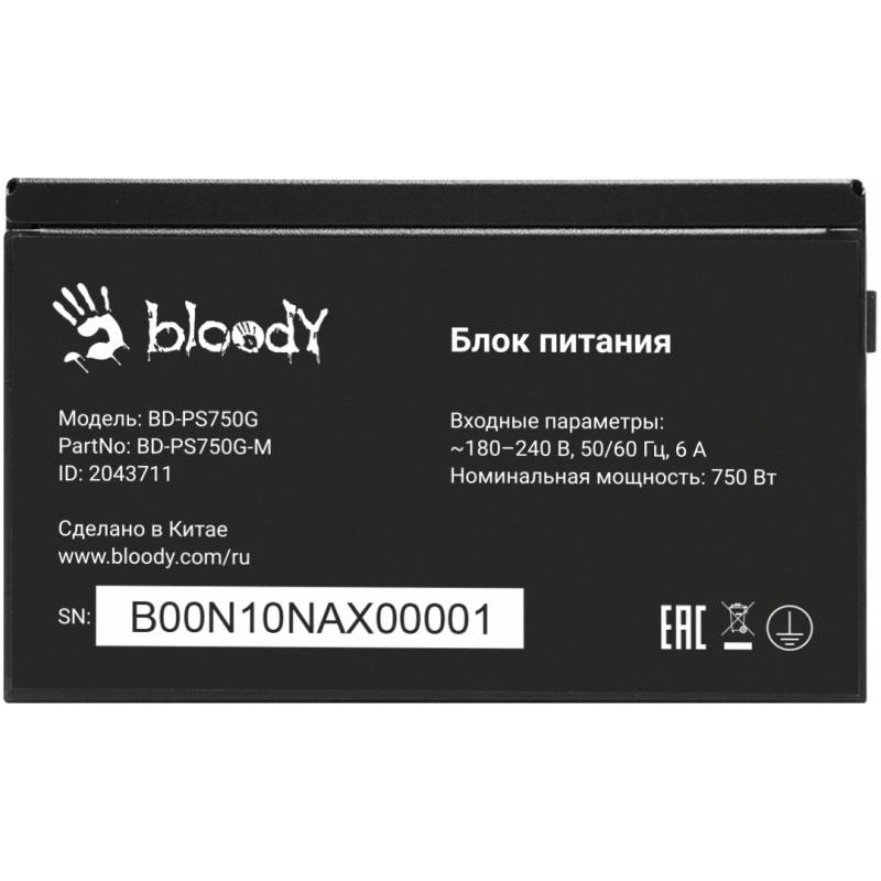 Блок питания Bloody ATX 750W BD-PS750G 80+ gold (20+4pin) APFC 120mm fan color LED 6xSATA Cab Manag RTL