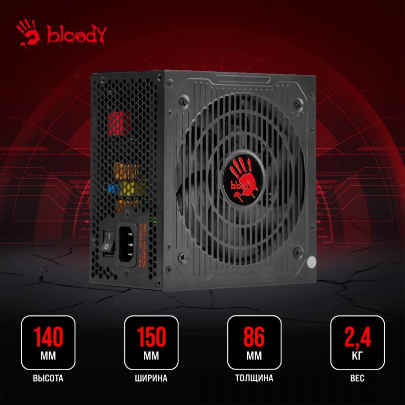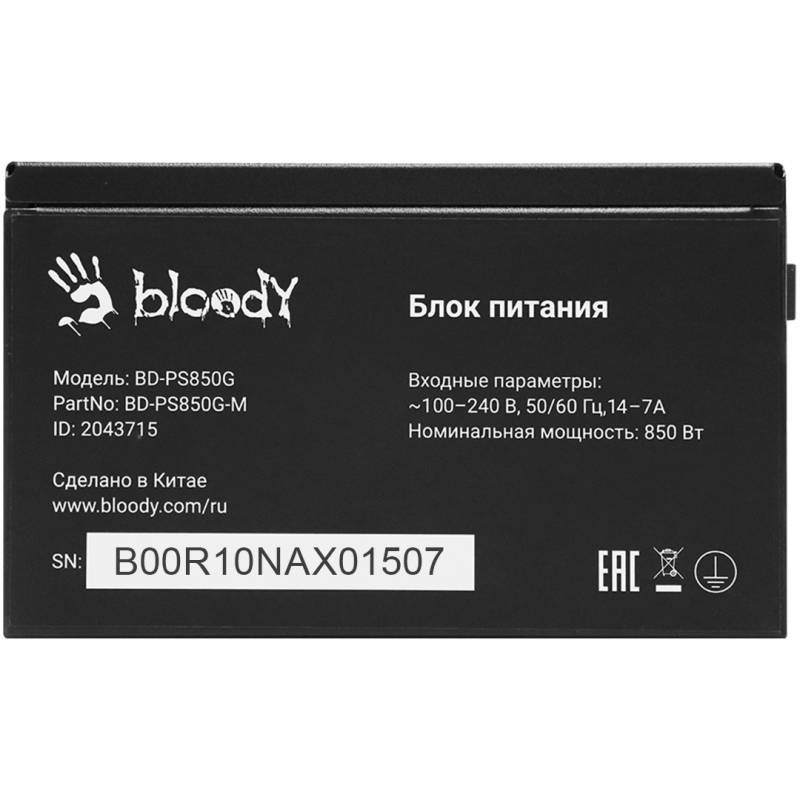 Блок питания Bloody ATX 850W BD-PS850G 80+ gold (20+4pin) APFC 120mm fan 12xSATA Cab Manag RTL
