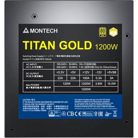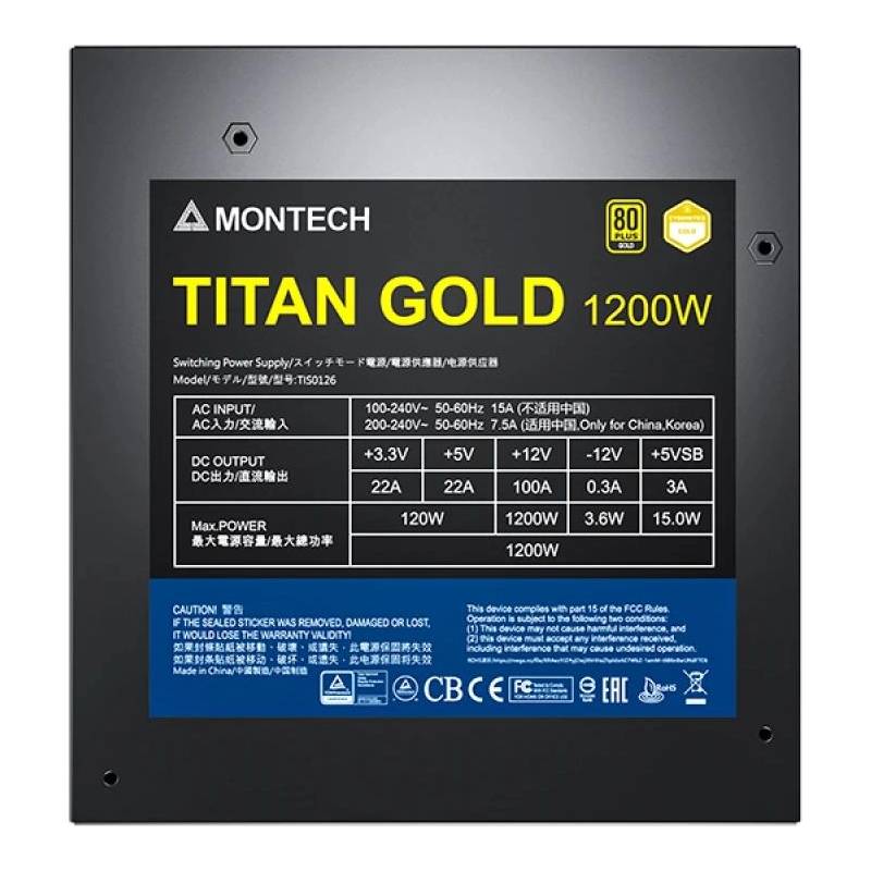 Блок питания Montech ATX 1200W TITAN GOLD Gen.5 80+ gold (20+4pin) APFC 135mm fan 12xSATA Cab Manag RTL