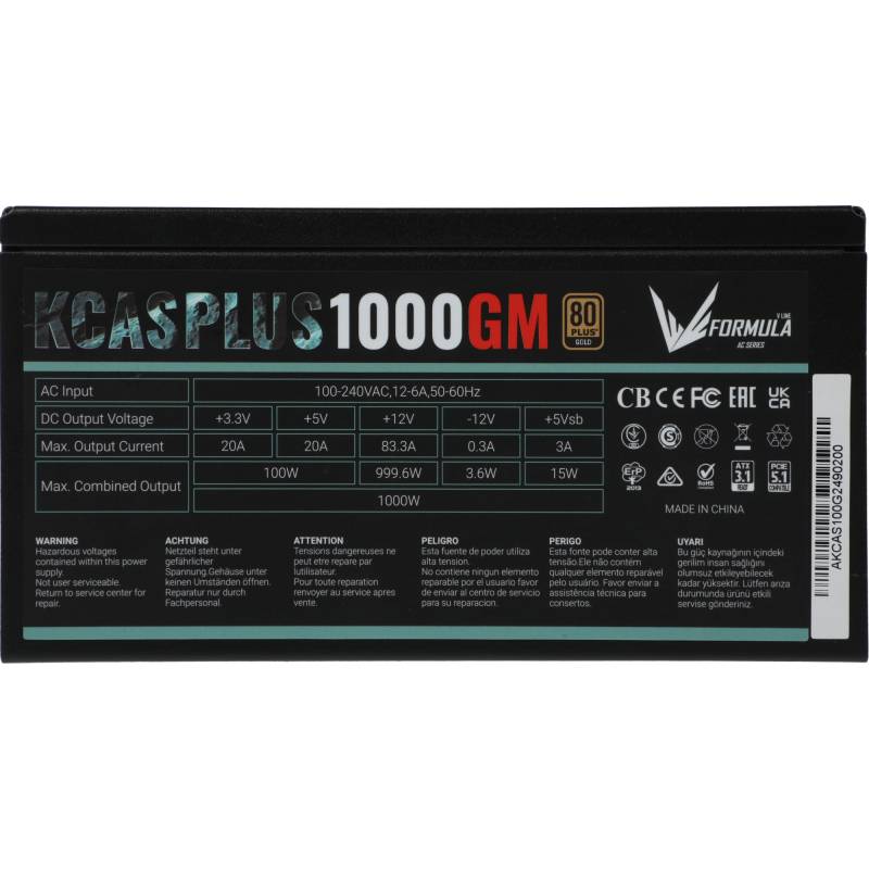 Блок питания Formula ATX 1000W AC KCAS PLUS 1000GM V2 80+ gold (20+4pin) APFC 140mm fan 10xSATA Cab Manag RTL