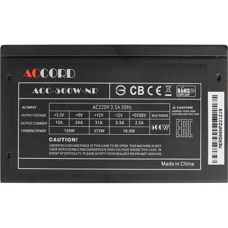 Блок питания Accord ATX 500W ACC-500W-NP (20+4pin) 120mm fan 4xSATA