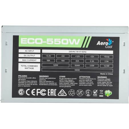 Блок питания Aerocool ATX 550W ECO-550 (20+4pin) 120mm fan 4xSATA RTL