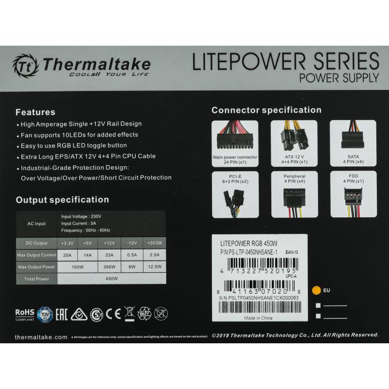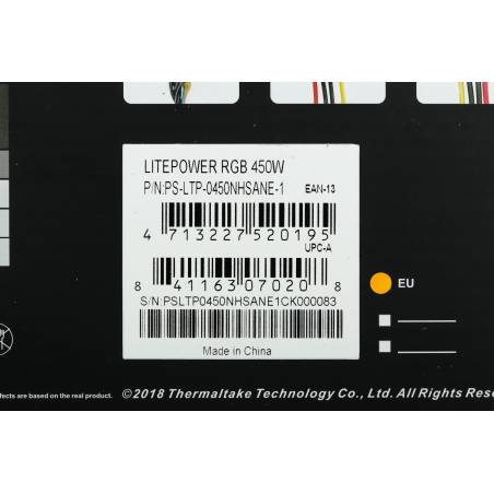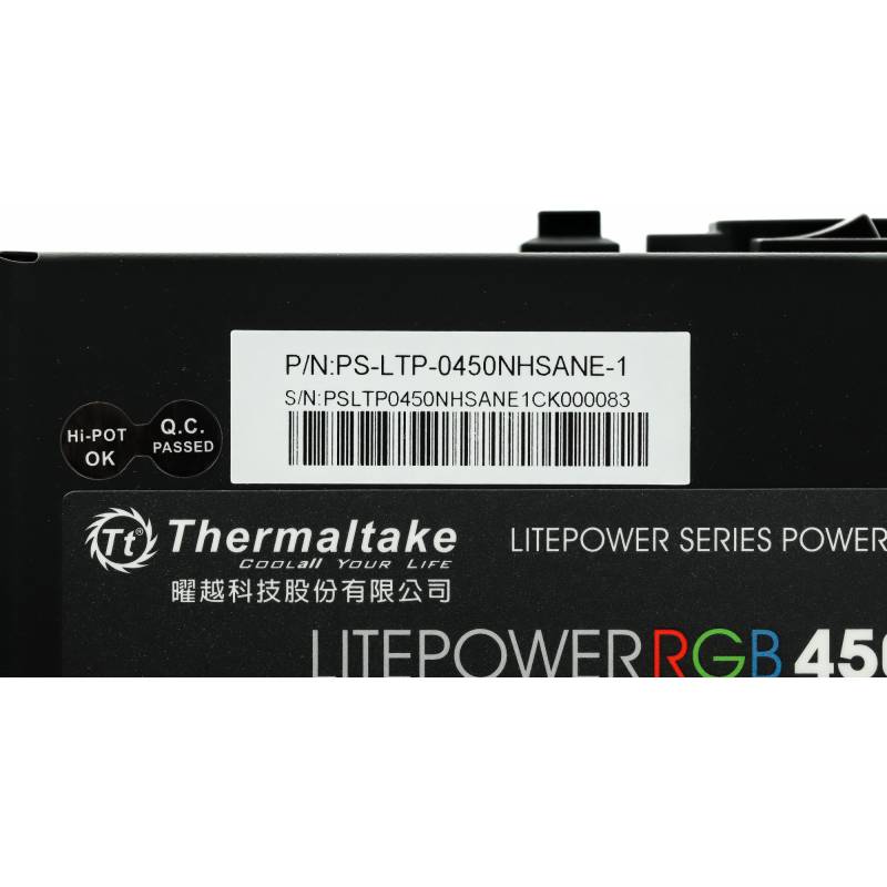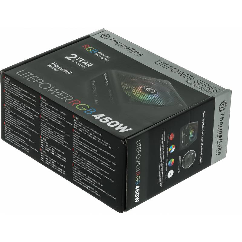 Блок питания Thermaltake ATX 450W Litepower RGB 450 (20+4pin) APFC PPFC 120mm fan color LED 4xSATA RTL