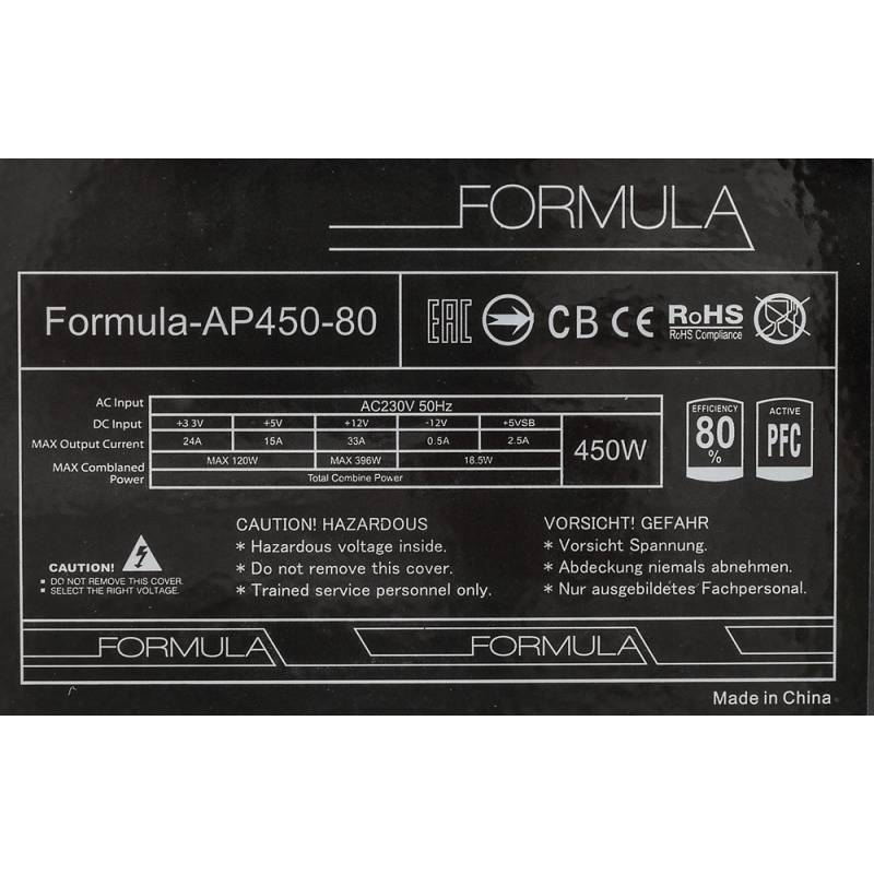 Блок питания Formula ATX 450W Formula-AP450-80 80 PLUS WHITE (20+4pin) APFC 120mm fan 7xSATA RTL