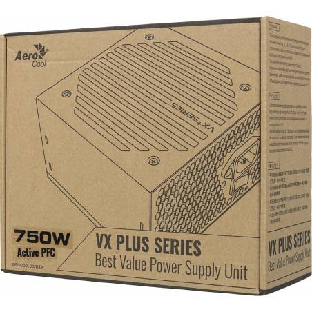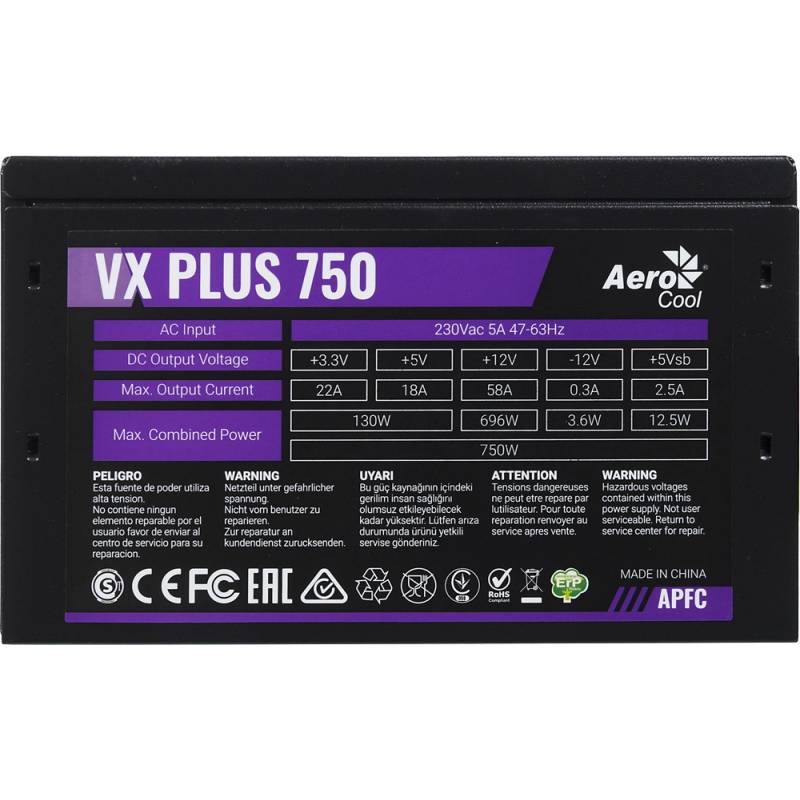 Блок питания Aerocool ATX 750W VX PLUS 750W (20+4pin) APFC 120mm fan 4xSATA RTL
