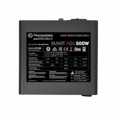 Блок питания Thermaltake ATX 500W Smart RGB 500 80+ white (20+4pin) APFC 120mm fan color LED 6xSATA RTL
