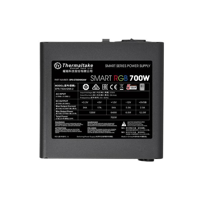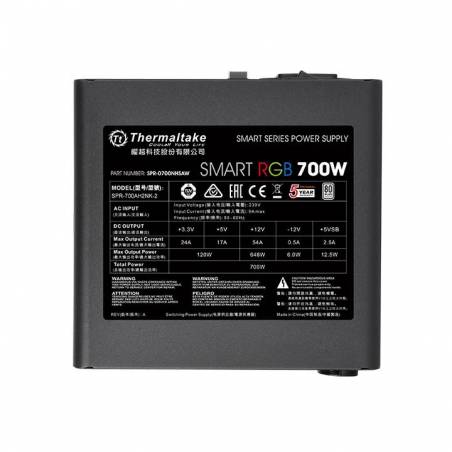 Блок питания Thermaltake ATX 700W Smart RGB 700 80+ white (20+4pin) APFC 120mm fan color LED 6xSATA RTL