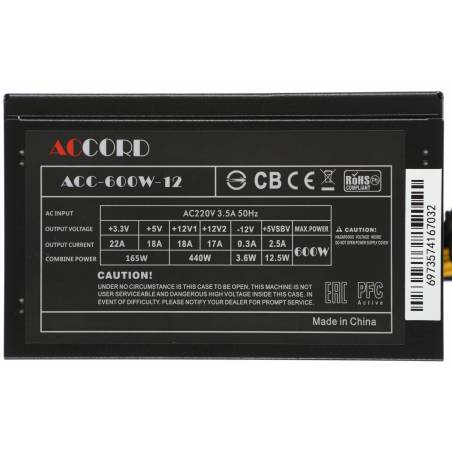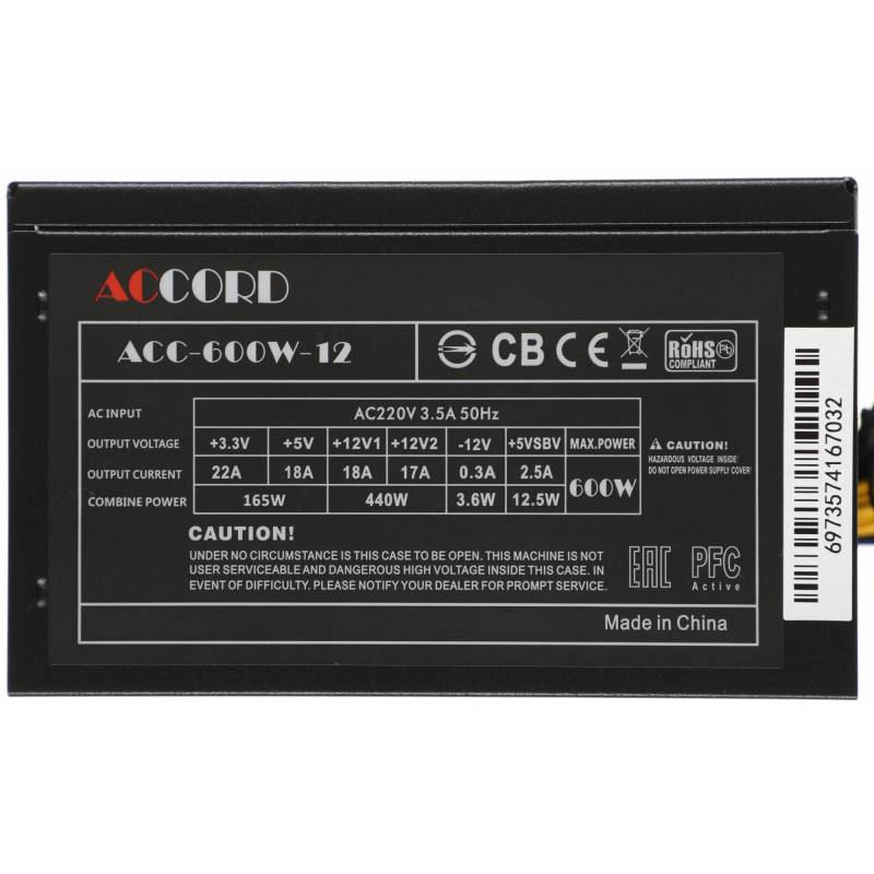 Блок питания Accord ATX 600W ACC-600W-12 (20+4pin) 120mm fan 4xSATA