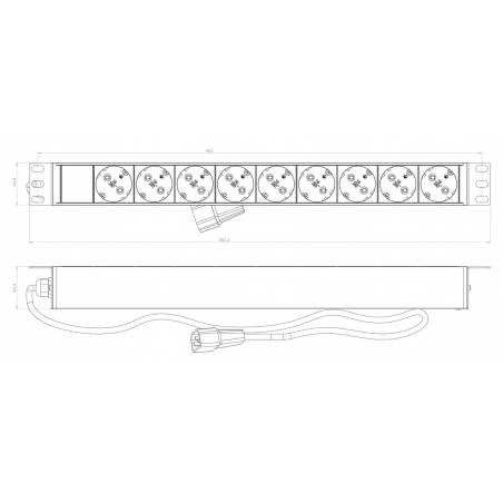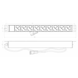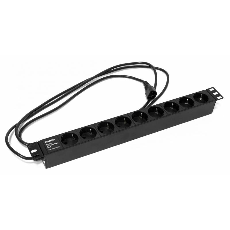 Блок распределения питания Hyperline SHE19-9SH-2.5IEC гор.размещ. 9xSchuko базовые 10A C14 2.5м