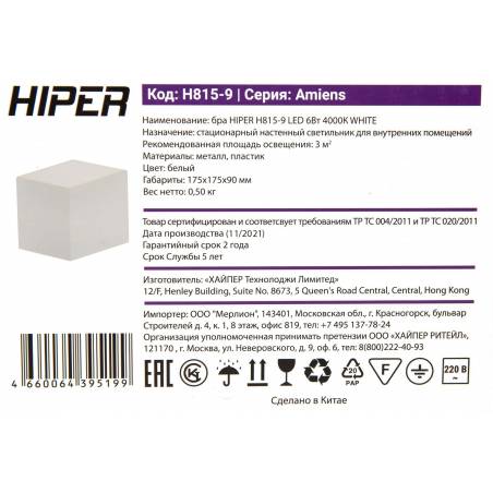 Светильник Hiper Amiens H815-9 6Вт 4000K белый