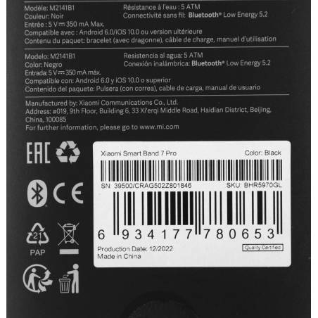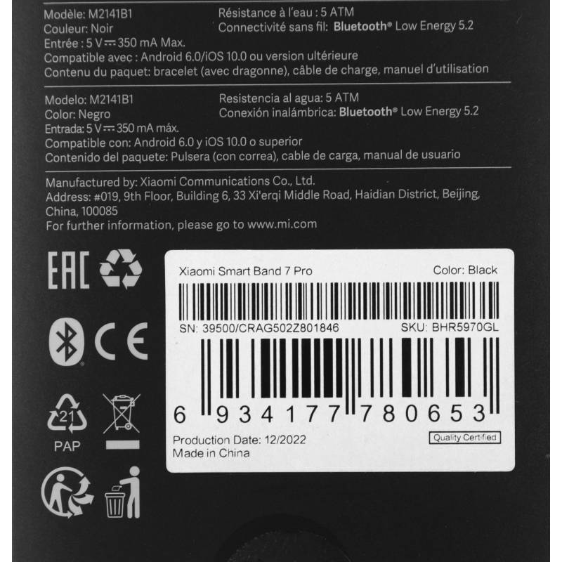 Смарт-браслет Xiaomi Smart Band 7 Pro M2141B1 AMOLED корп.:черный рем.:черный (BHR5970GL)
