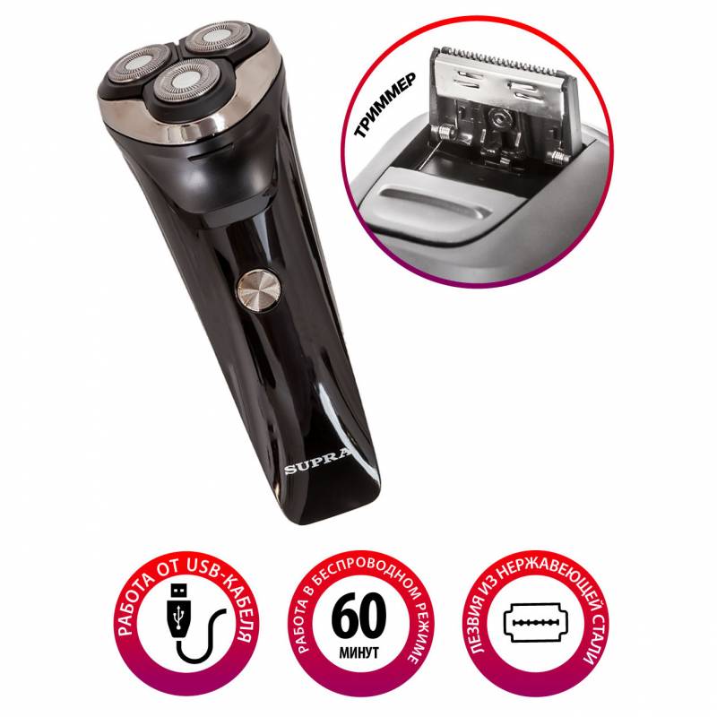 Бритва роторная Supra RS-319 реж.эл.:3 питан.:аккум. черный