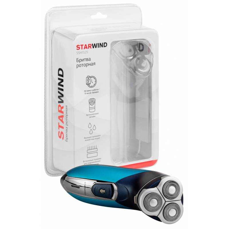Бритва роторная Starwind SSH 1525 реж.эл.:3 питан.:аккум. голубой/черный
