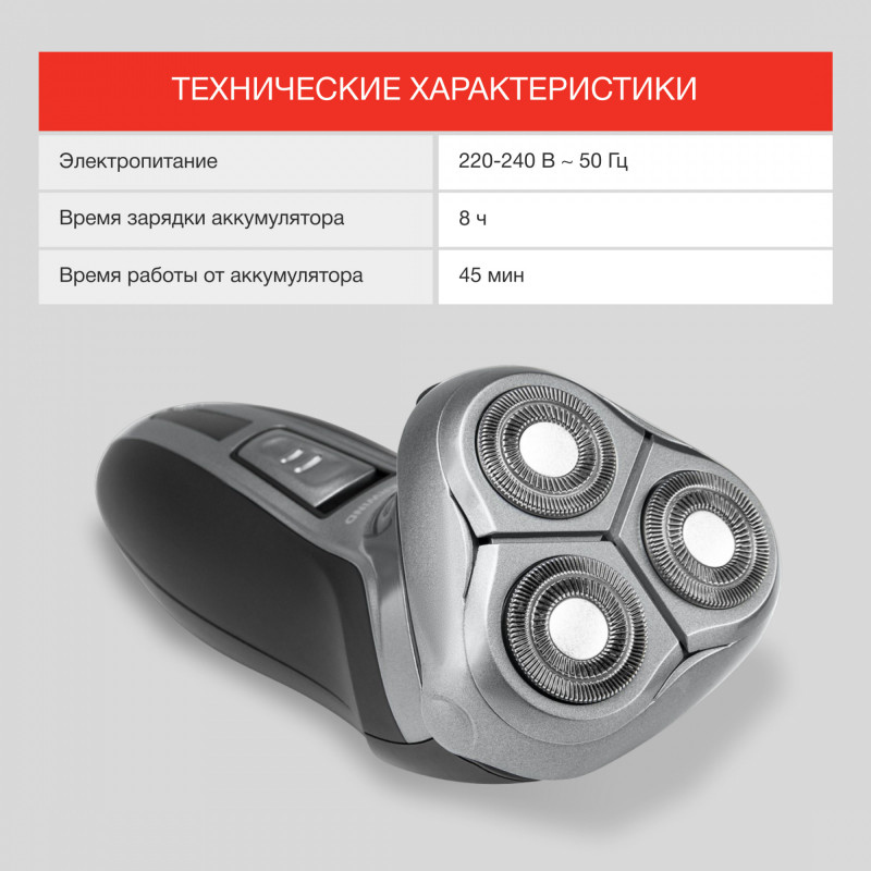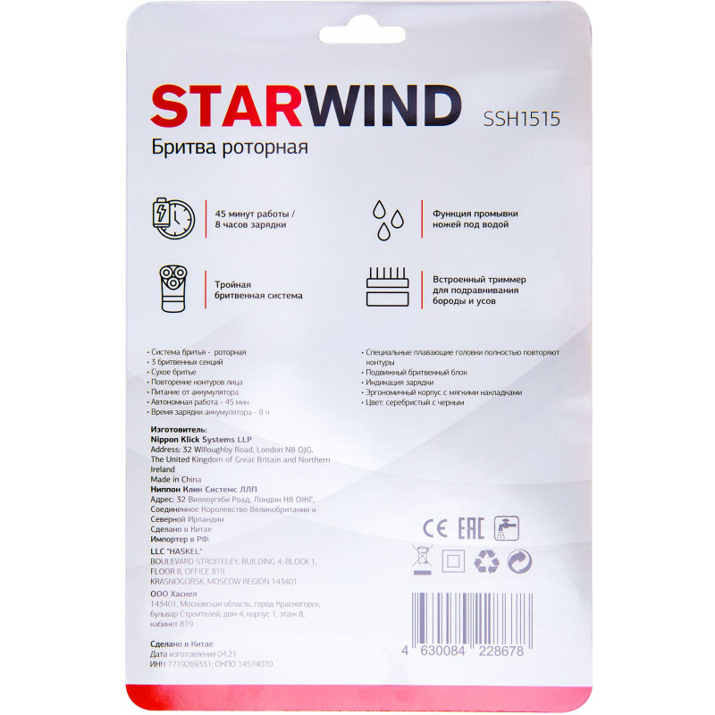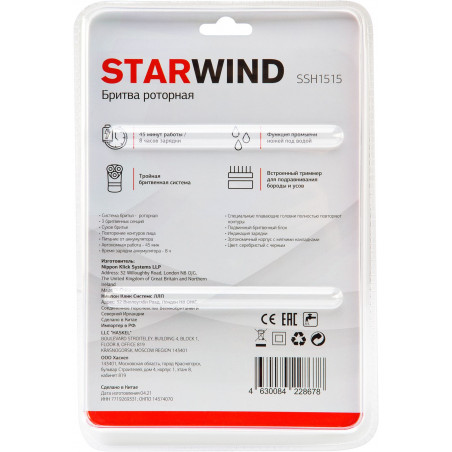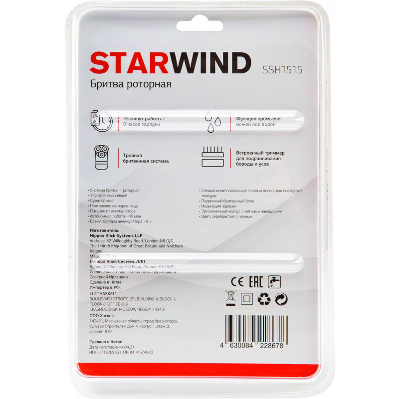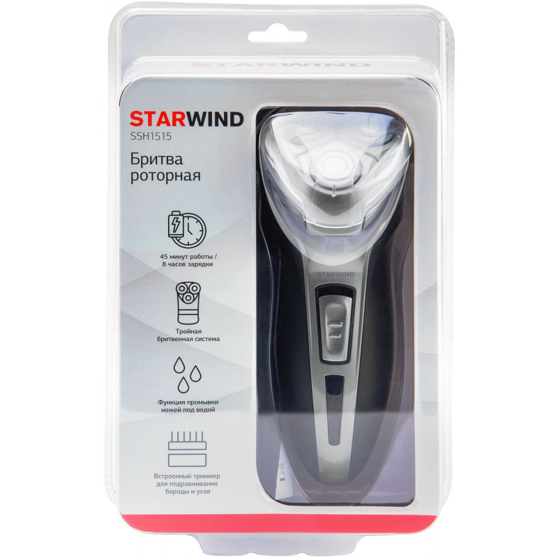 Бритва роторная Starwind SSH 1515 реж.эл.:3 питан.:аккум. серебристый/черный