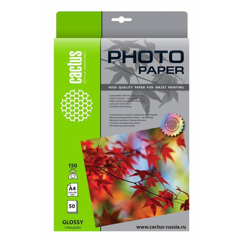 Фотобумага Cactus CS-GA415050 A4/150г/м2/50л./белый глянцевое для струйной печати