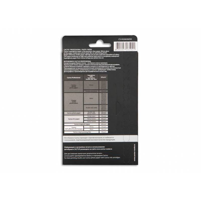 Фотобумага Cactus Prof CS-HGA626050 10x15/260г/м2/50л./белый глянцевое для струйной печати