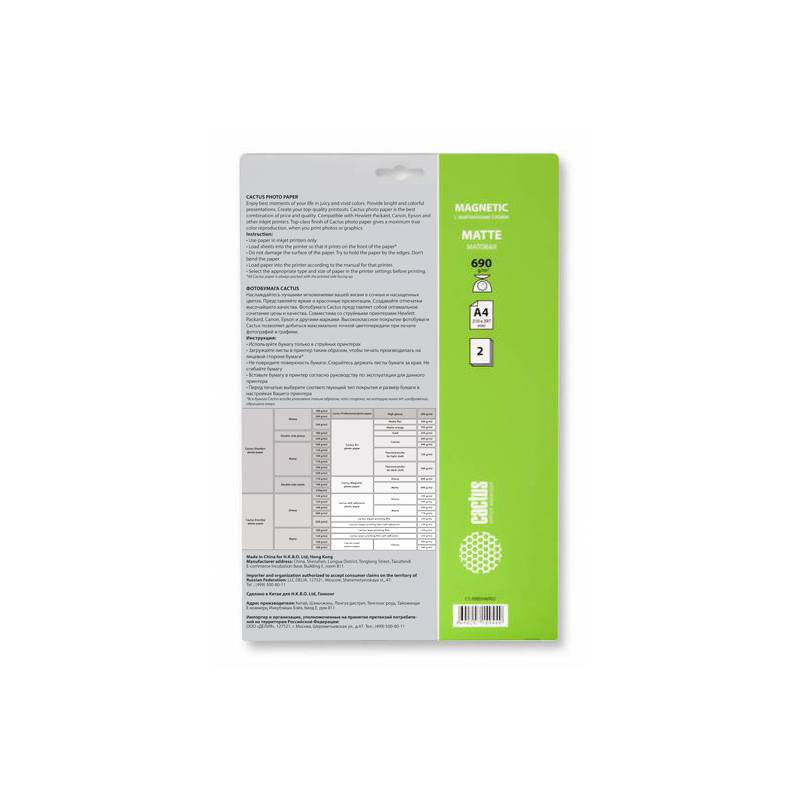 Фотобумага Cactus CS-MMA46902 A4/690г/м2/2л./белый матовое/магнитный слой для струйной печати