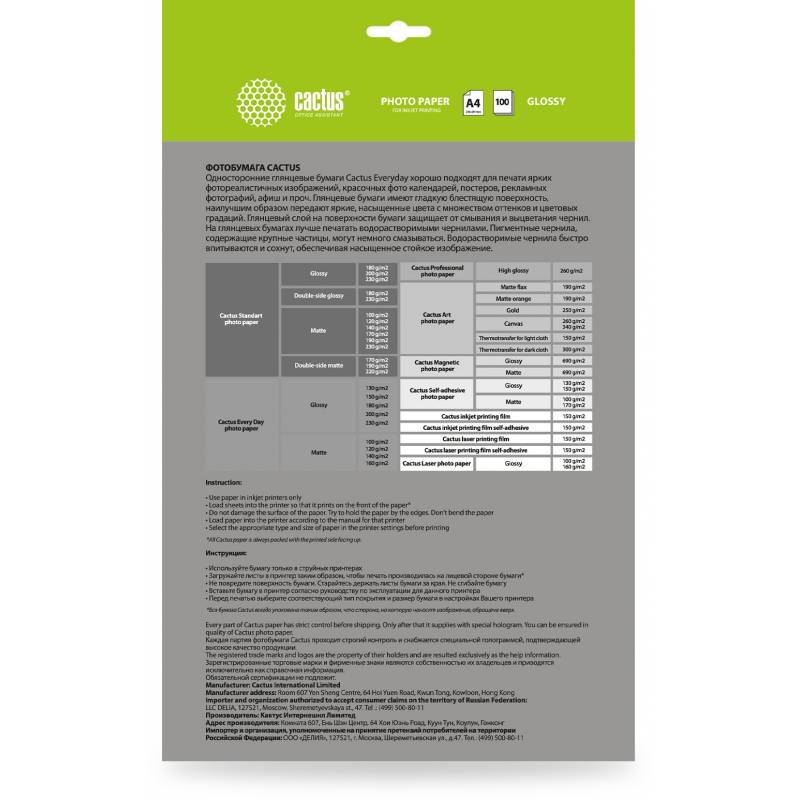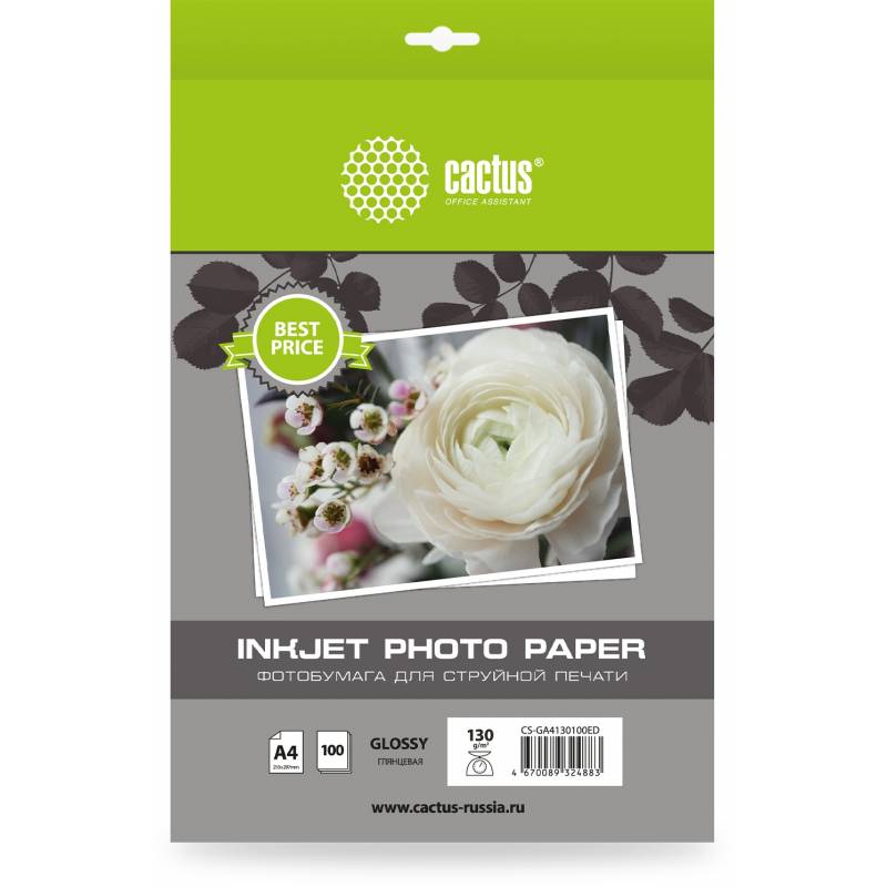 Фотобумага Cactus CS-GA4130100ED A4/130г/м2/100л./белый глянцевое для струйной печати