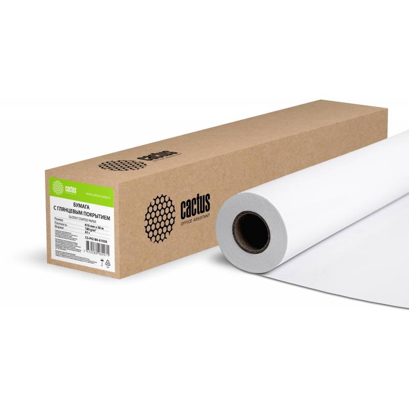 Бумага Cactus CS-PG180-61030 24"(A1) 610мм-30м/180г/м2/белый глянцевое для струйной печати втулка:50.8мм (2")