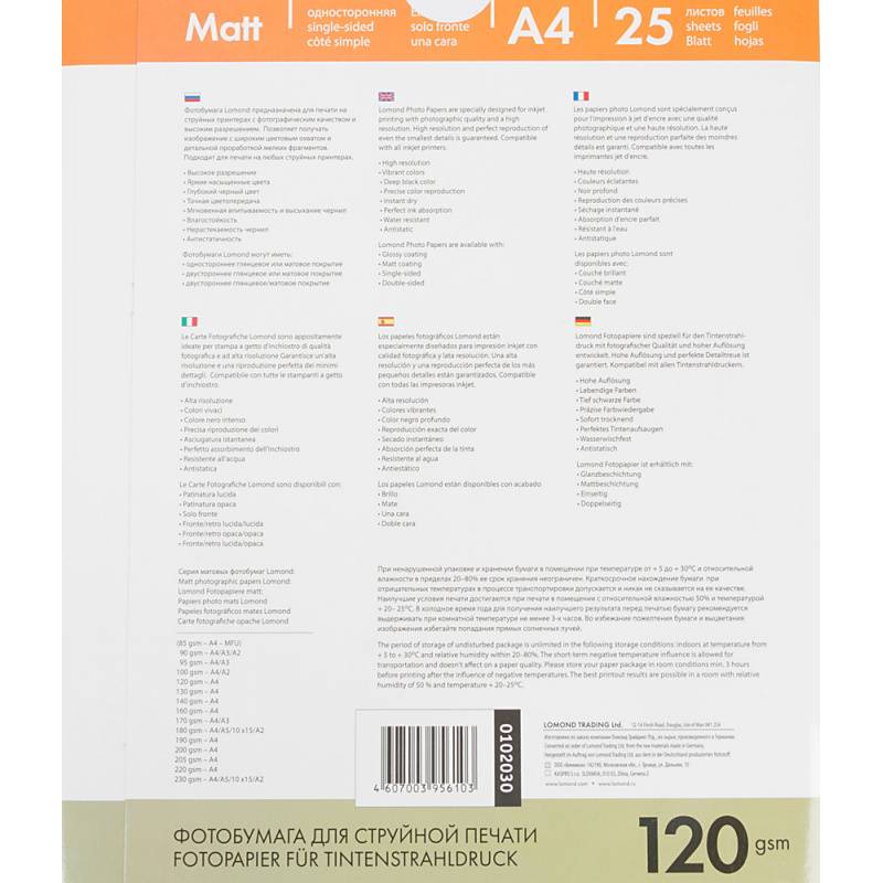 Фотобумага Lomond 0102030 A4/120г/м2/25л./белый матовое для струйной печати